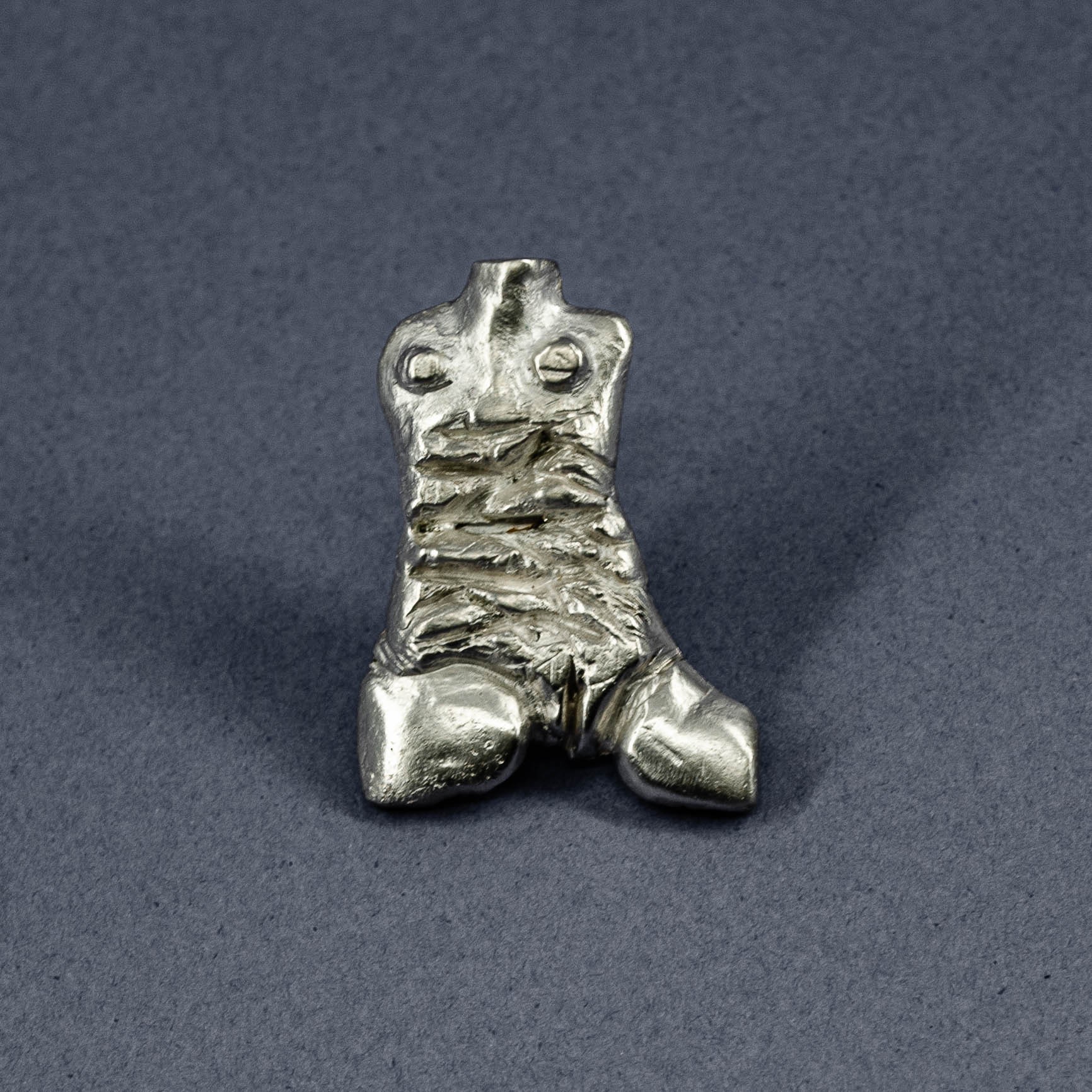 De repente, a vontade de voltar à figuração, aos desenhos na beirada do caderno. Fazer em relevo o que é próximo: sempre uma mulher. Eu? Esta peça joanavp é resultado deste exercício de retorno a si como pergunta. O broche mulher de frente é esculpido em cera e fundido em prata 950, criação exclusiva e confecção manual de joanavp.