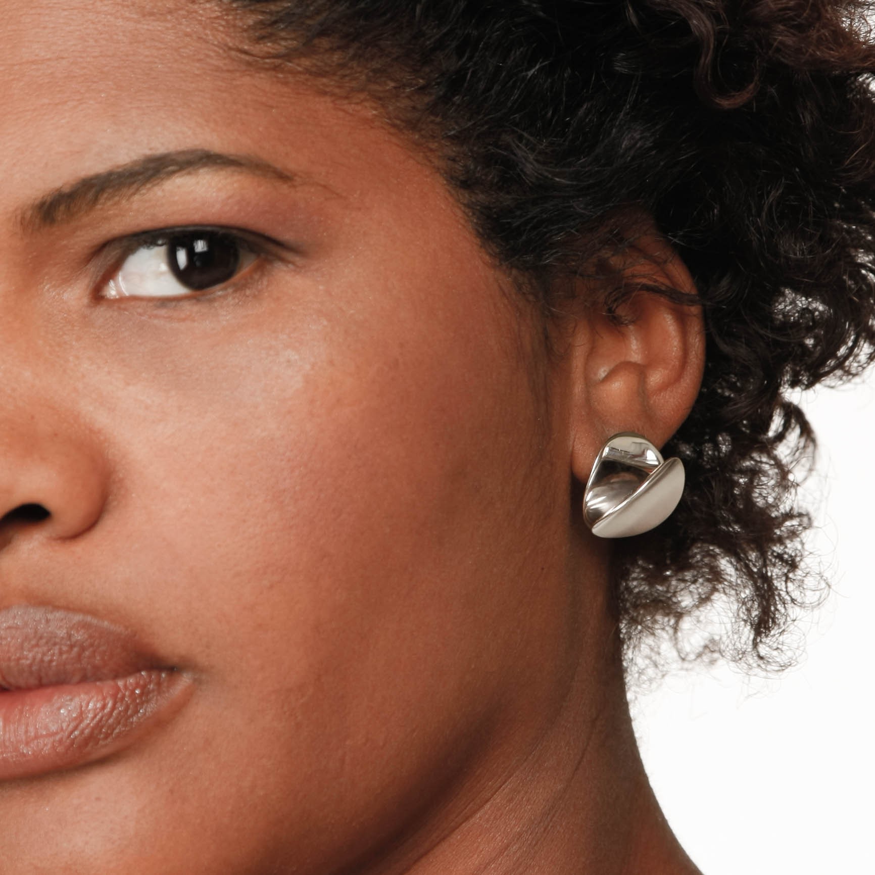 Coleção pétala é um estudo da relação entre dentro e fora. Dois círculos abaulados são unidos pela superfície convexa, formando um lado “de dentro” aberto. Com desenho exclusivo e confecção manual de joanavp, este brinco é uma das nossas peças mais elegantes, com destaque para o jogo de luzes formado pelo fosco exterior e o interior polido.